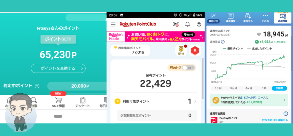 毎月積み上げていけば、年間でも12万円相当のポイントが貯まります。ポイ活で稼いだお金で、休日の趣味を充実させましょう。